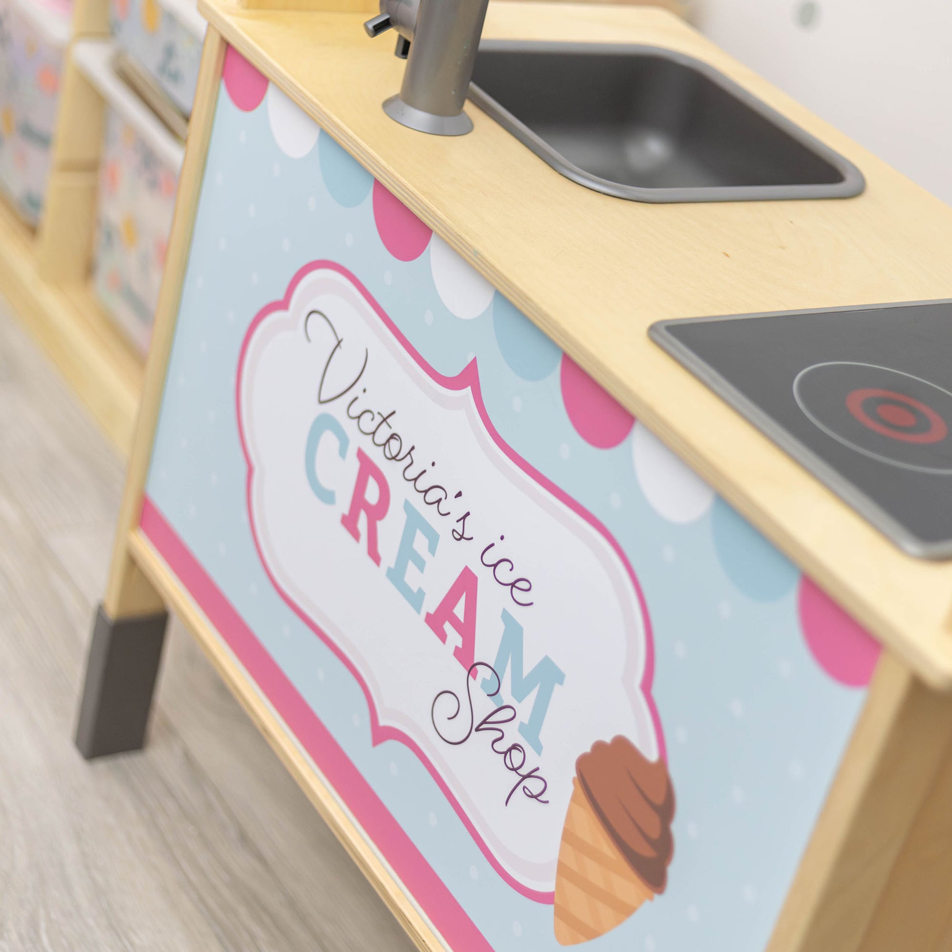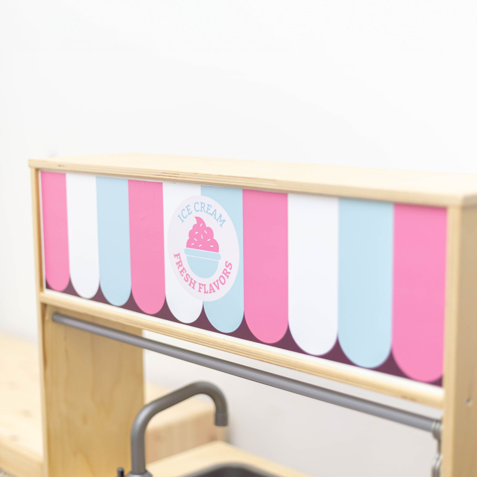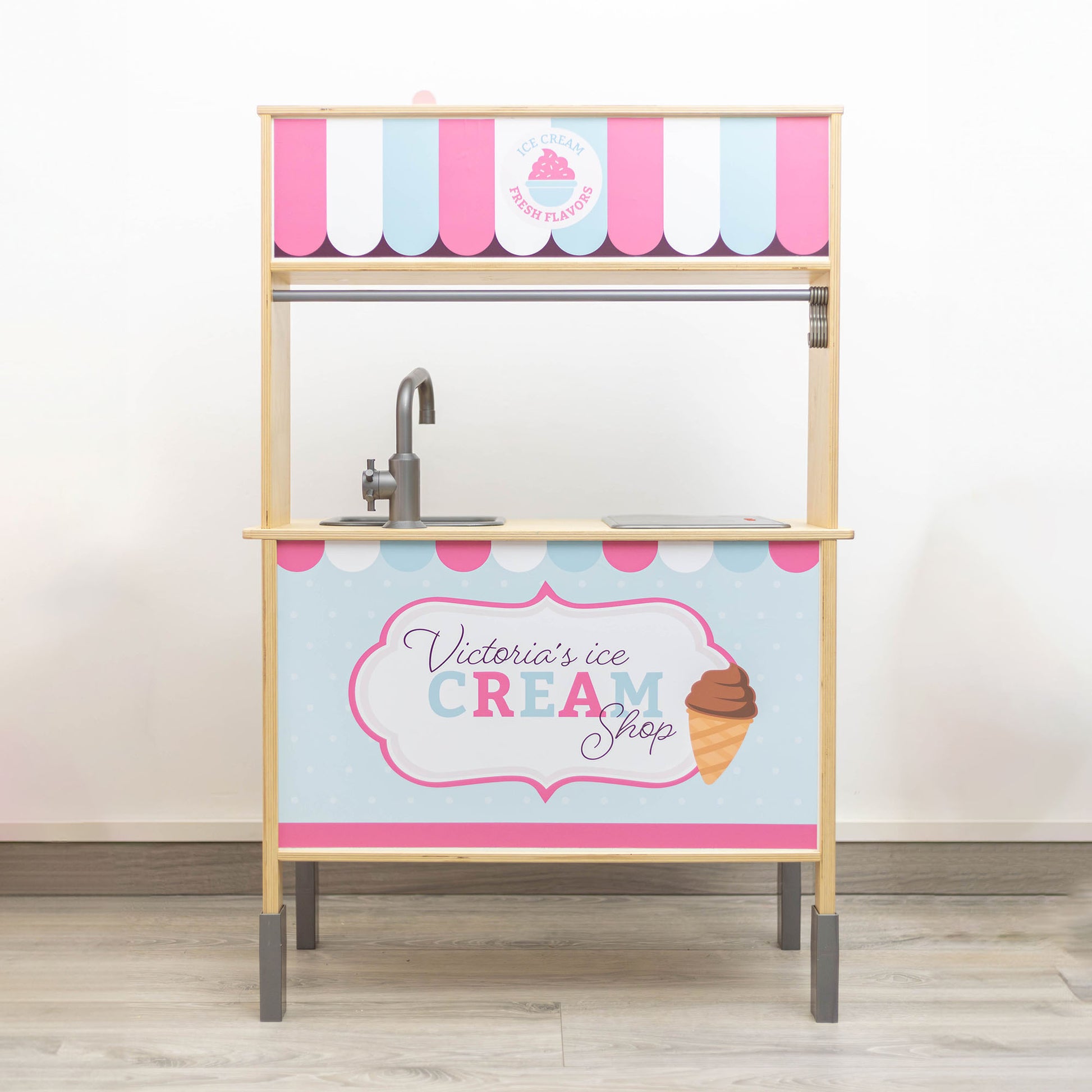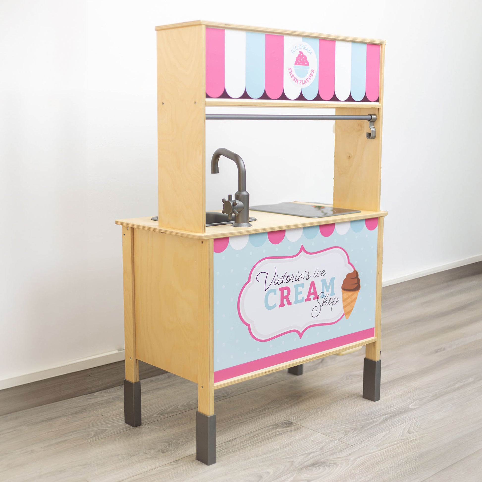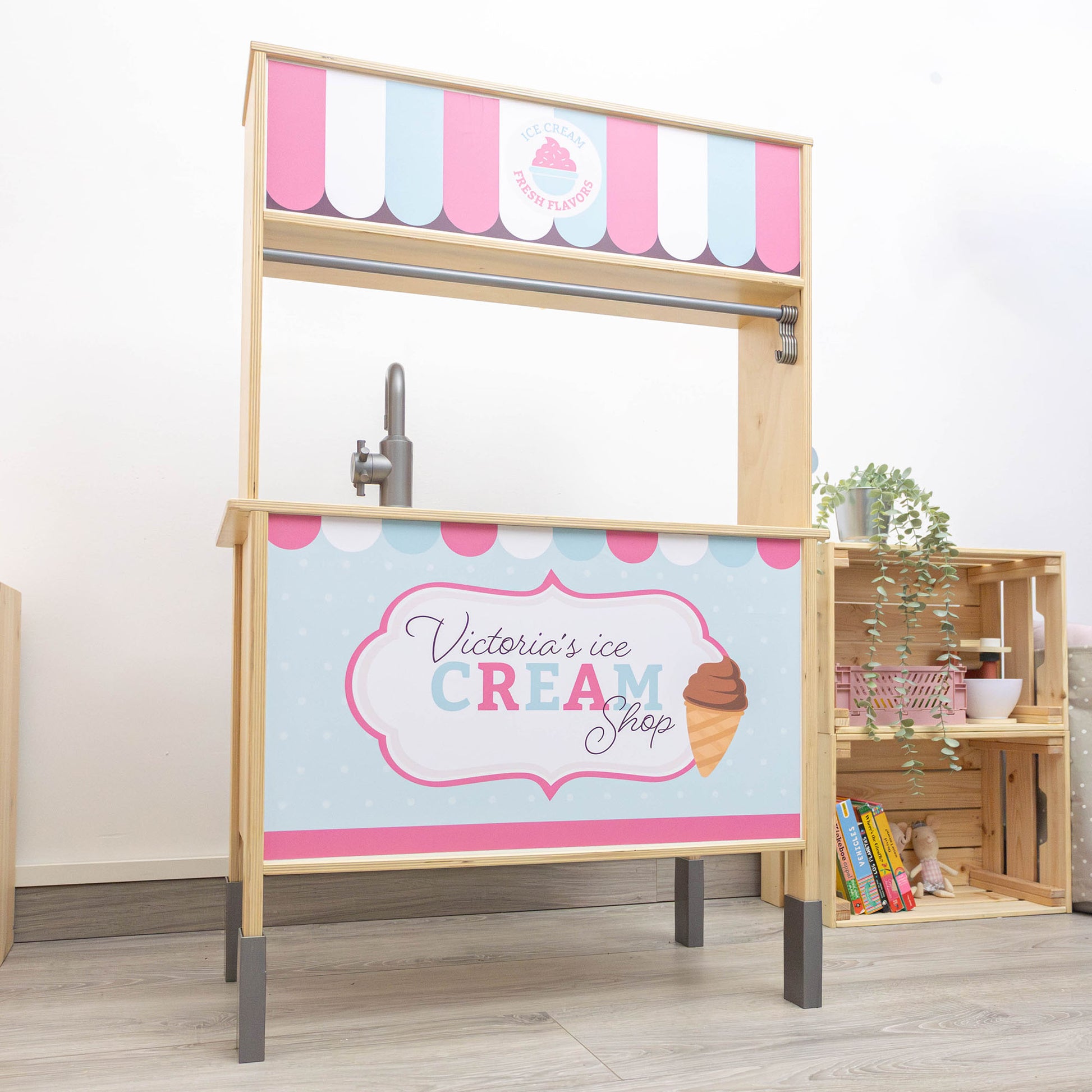 Transform the back of your IKEA DUKTIG kitchen into a charming ice cream shop with our decorating sticker set!
