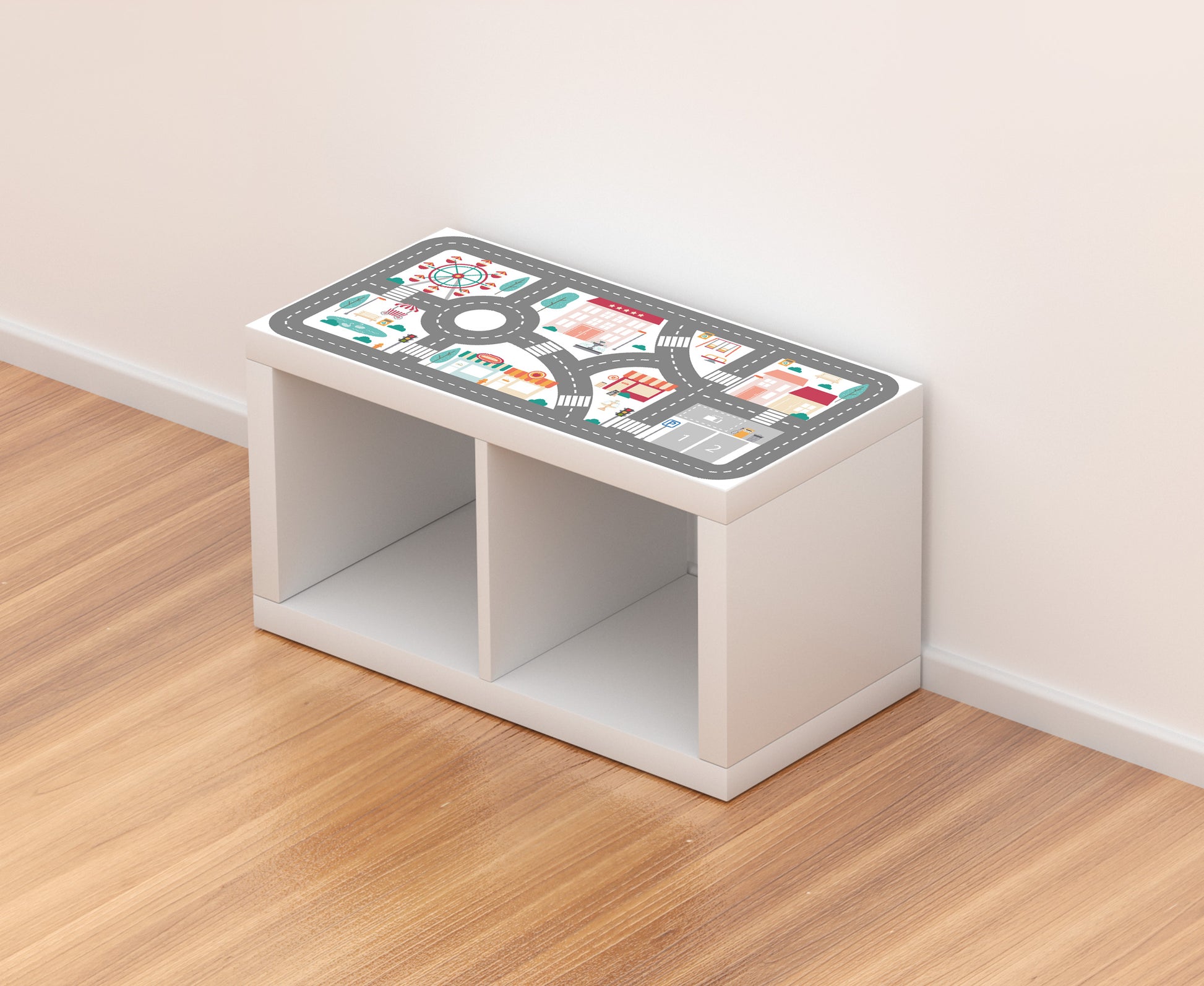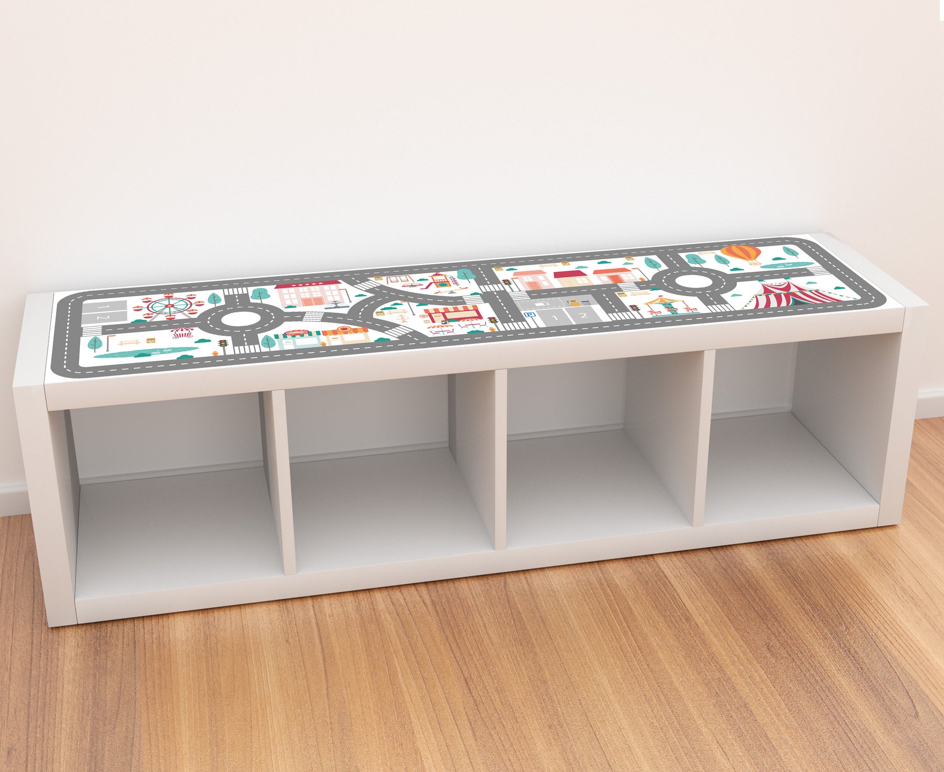 Turn your IKEA KALLAX shelf into a fun game table with our Fun City sticker.