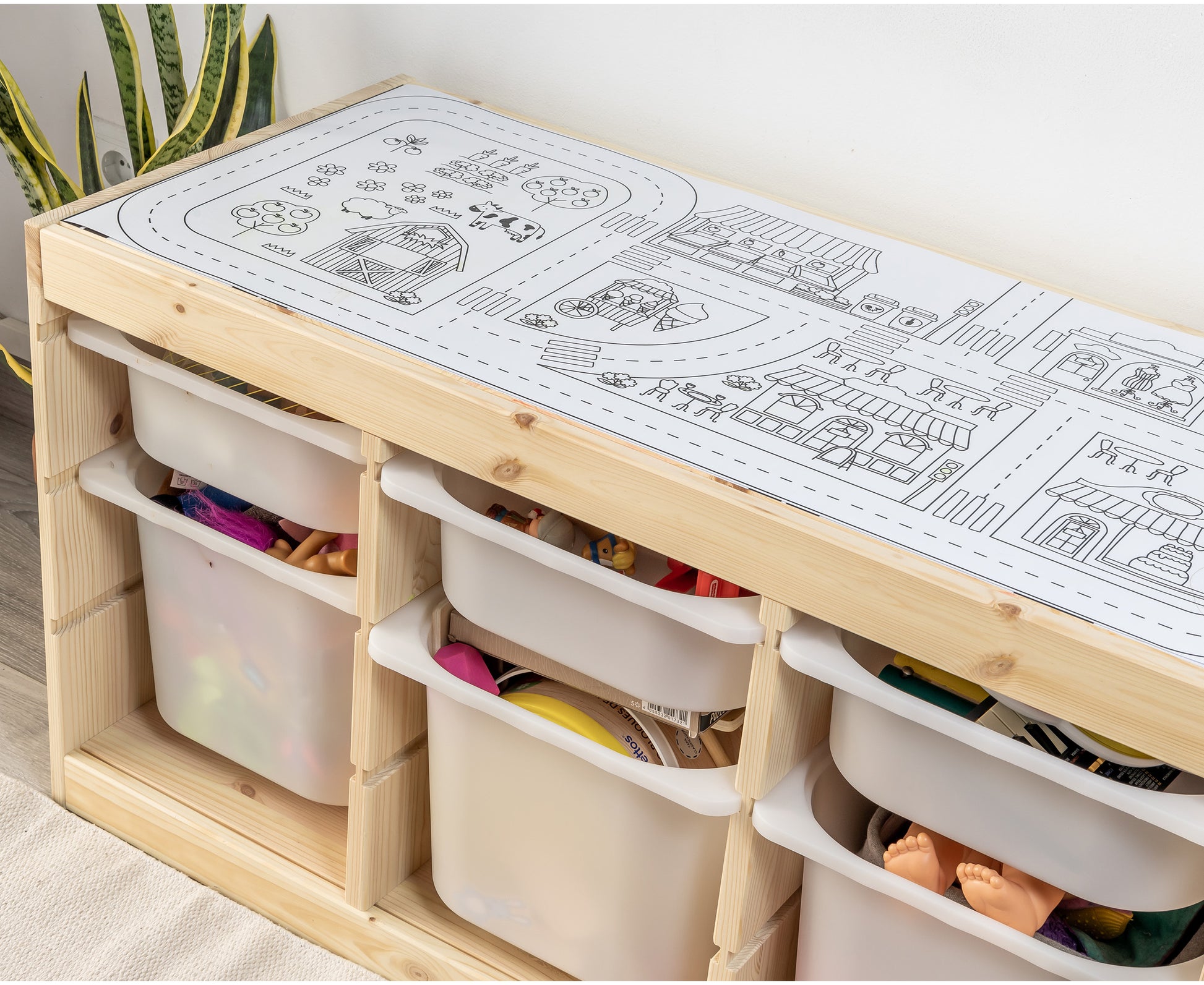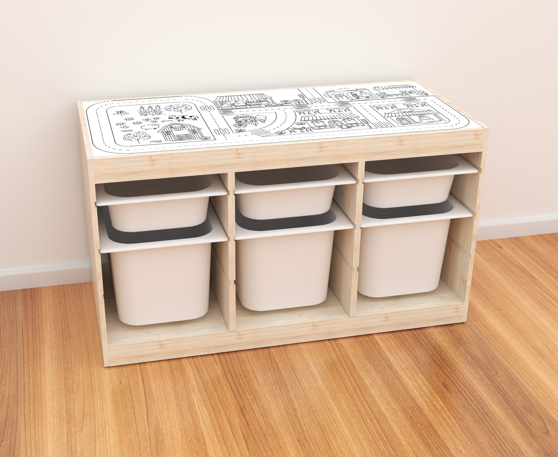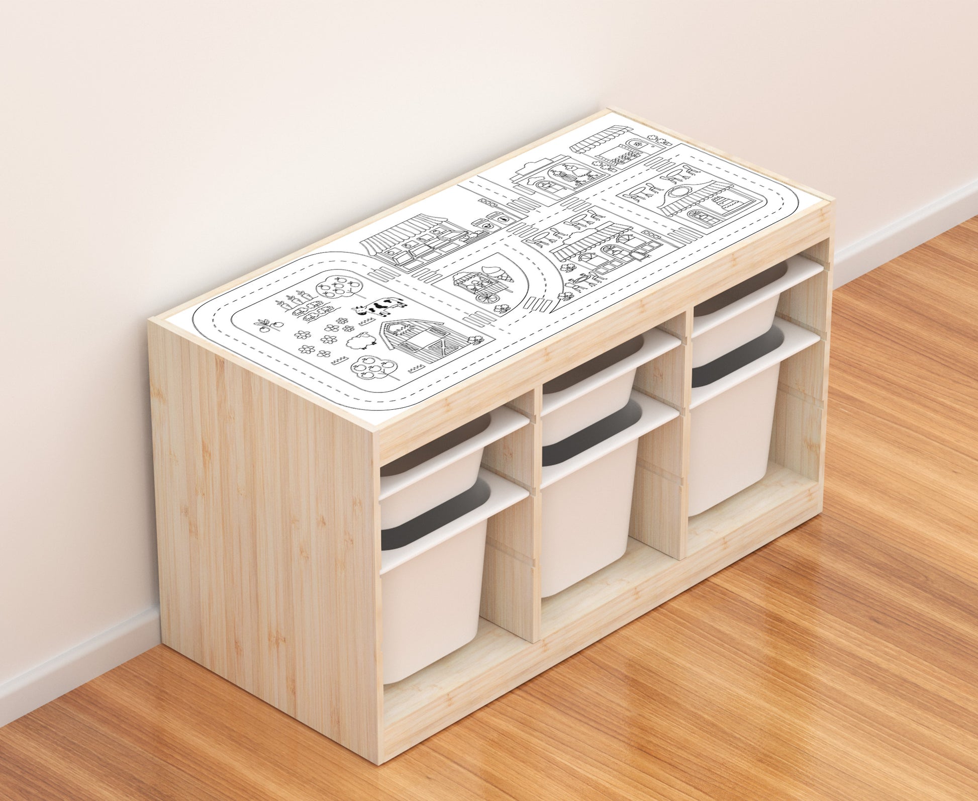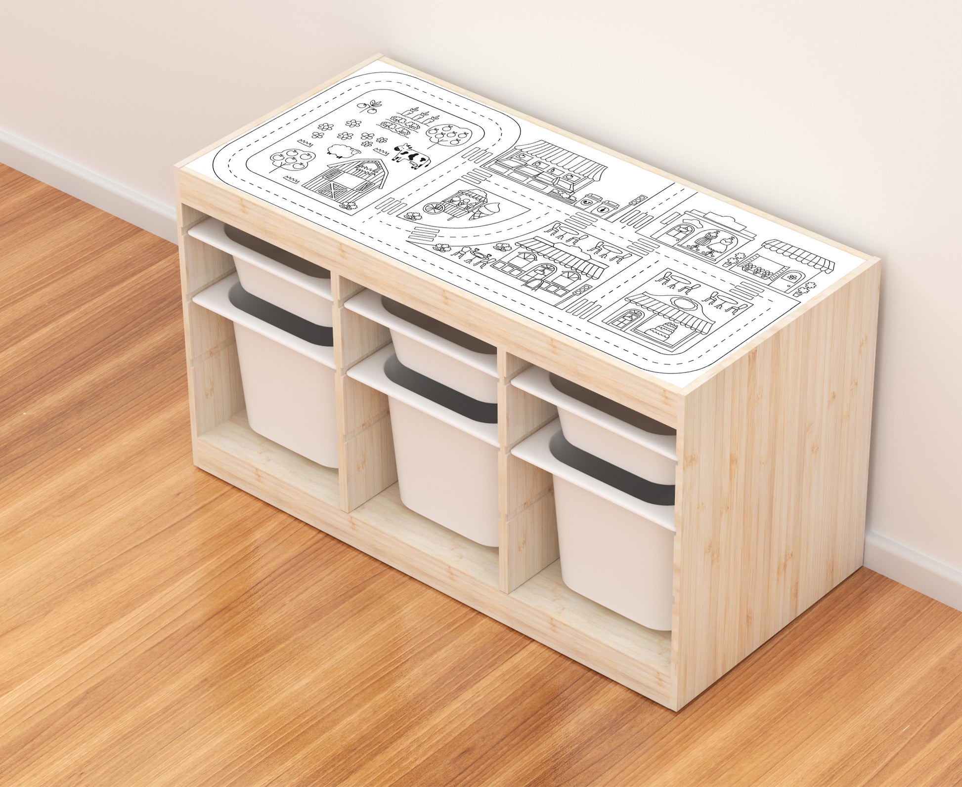 Turn your IKEA TROFAST shelf into a fun game table with our Farm Market Town sticker.