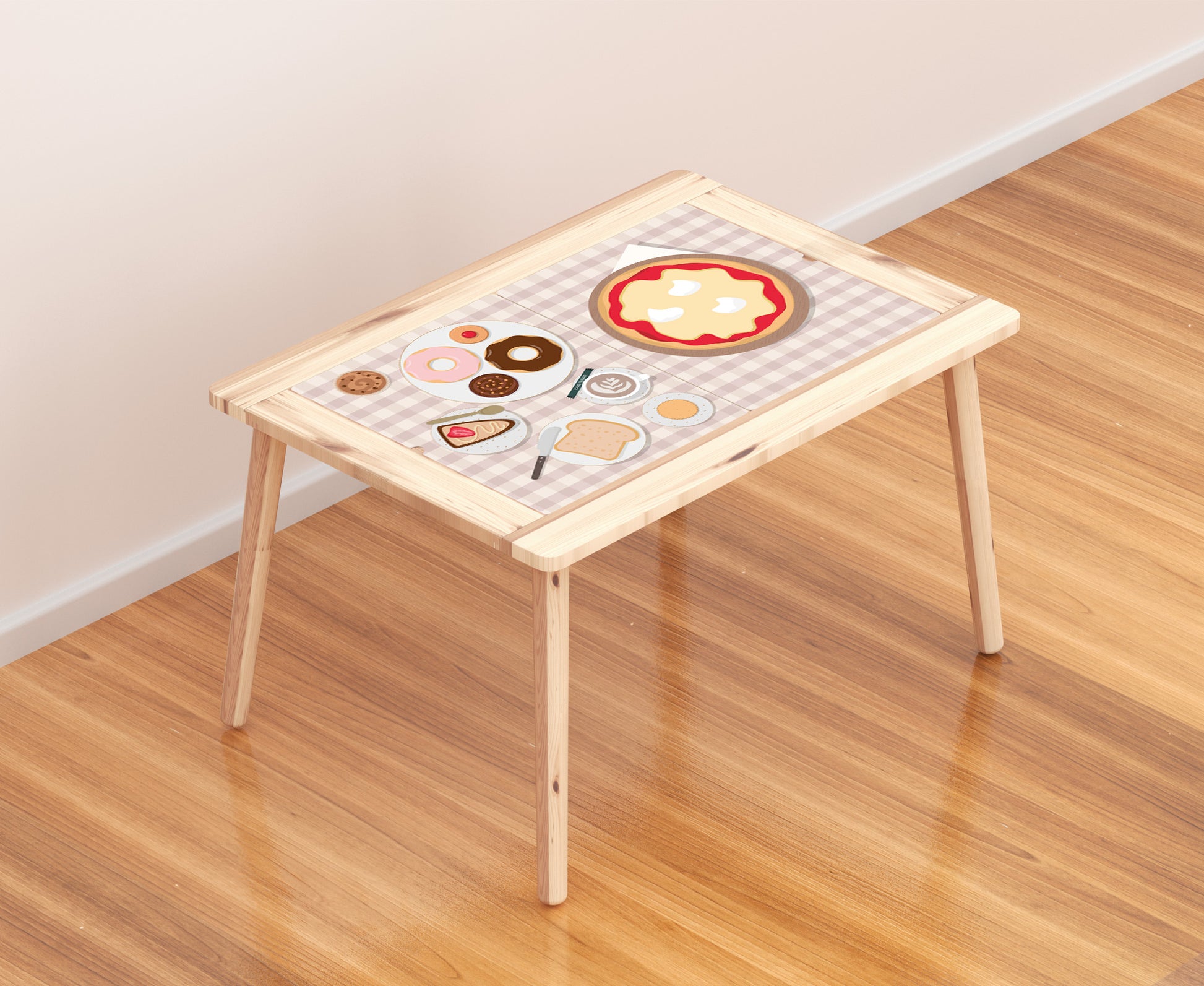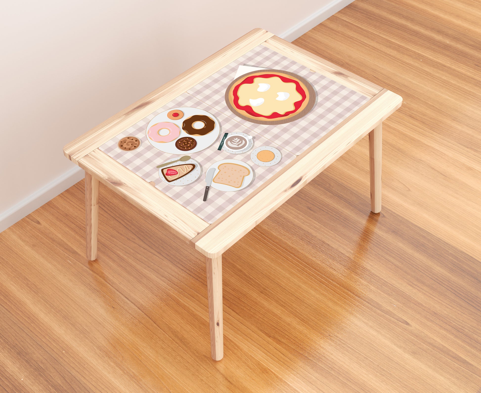 Our sticker features a strong UV laminate that makes it durable and easy to clean. Don't worry about stains! Just gently wipe the surface and it's ready for more culinary adventures. Turn the FLISAT table into a place where your little chefs can create and enjoy exciting moments of imaginative play. The fun is served!