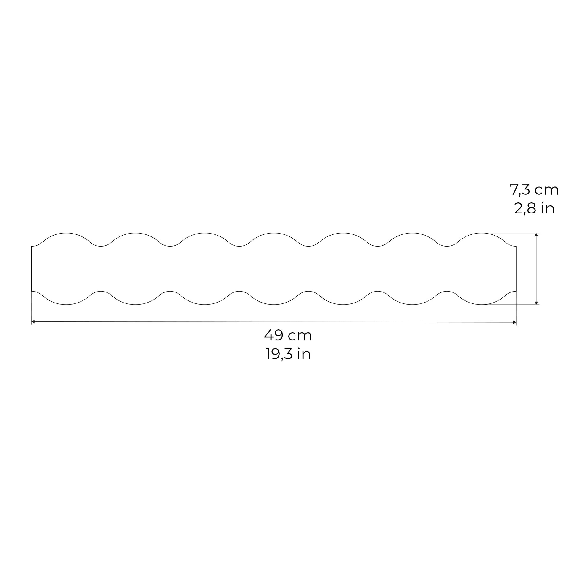 - Medidas: 49,3 cm (largo) x 7 cm (alto en el punto máximo).