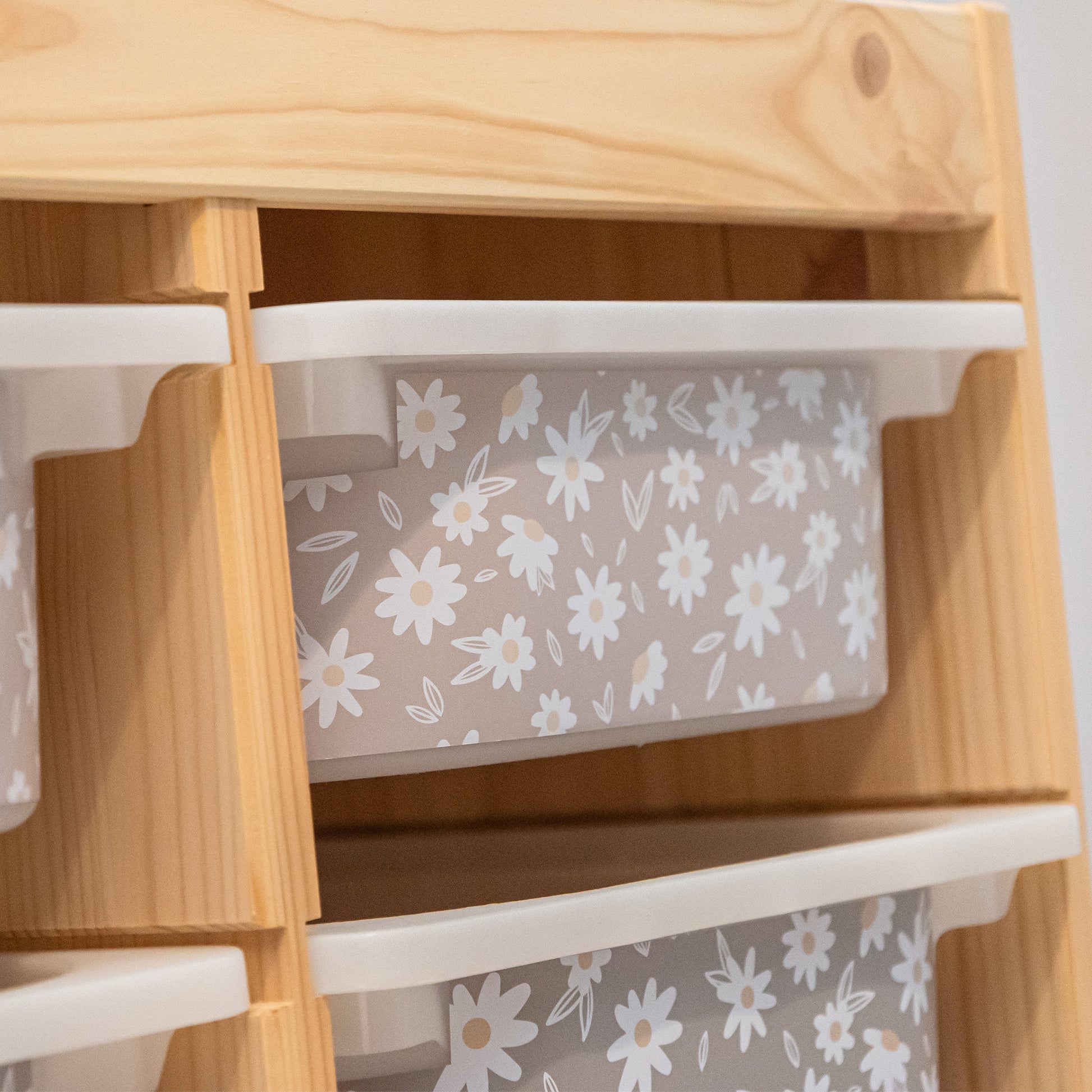 ¡Transforma la funcionalidad simple de tus cajones IKEA TROFAST en una declaración de estilo! Nuestras Pegatinas Decorativas de Vinilo está diseñado a medida para el lado corto de las cajas, añadiendo un hermoso patrón floral que embellece cualquier habitación infantil o sala de juegos.